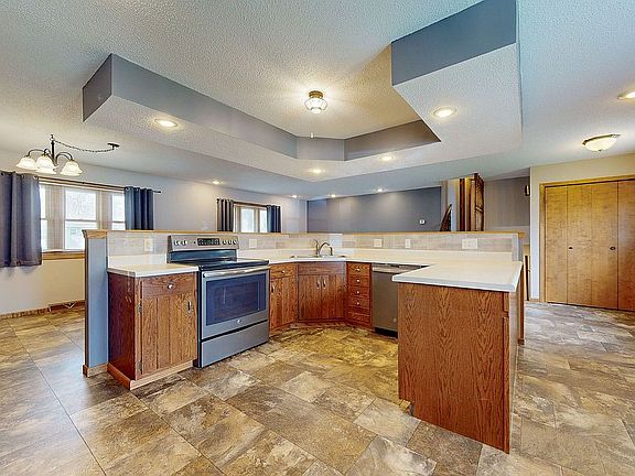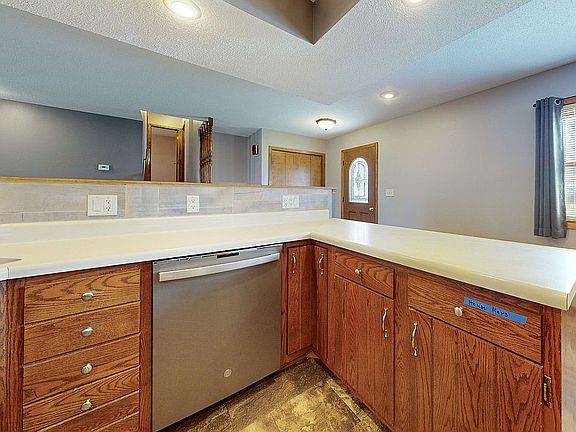 This charming split-level is located in a family-friendly neighborhood, on a quiet street, close to Cherokee and Storm Lake. It features an attached heated 2-car garage. The main level has carpet and vinyl floors and has been remodeled to have an open designed kitchen-dining-living space.. The kitchen features vinyl floors, solid surface counters and tiled backsplash. The primary bedroom is located on the upper level and features carpet floors. The Upper level includes 3 bedrooms, a full bath and laundry room. The finished walkout lower level features a large family room, wet bar, and a half bath. The lower level features a full bath and laundry room. Outside you'll find a large paver patio overlooking the yard with mature trees. Appliances included: Stove on main floor, refrigerator, microwave, dishwasher, stove on lower level, water softener, stack washer and dryer on upper level, washer and dryer on lower level, and sauna. Property Improvements: - All New Windows - 2021