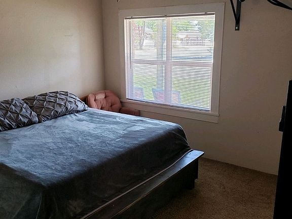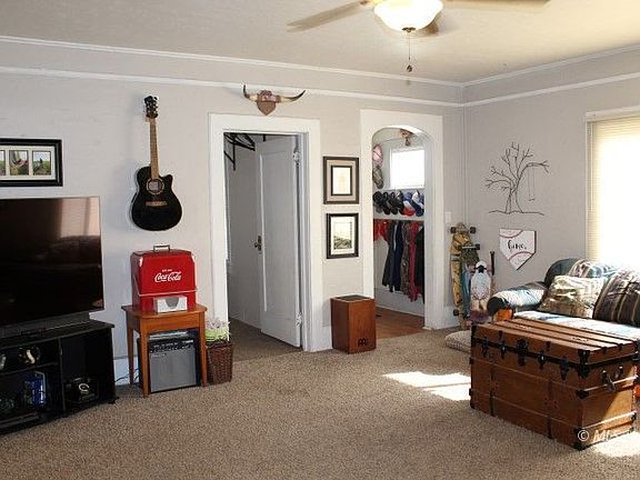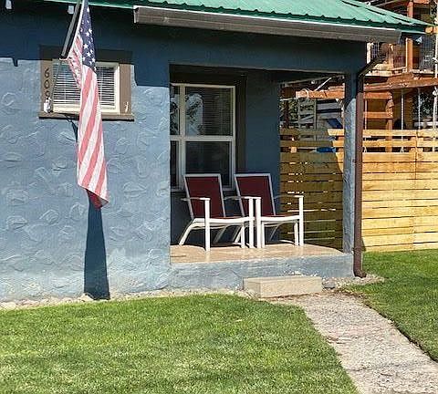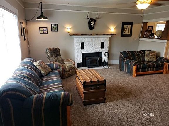 Perfect Place to Start! 3 bed/1bath home that has a great kitchen, large living room and good- sized bedrooms. The kitchen and laundry area have laminate flooring. The bedrooms are carpeted, and the living room has brand new carpet. Under the carpet in the living room are original hardwood floors, along with the dining area, master bedroom and hallway. Some painting has been done recently including the brick surrounding the wood stove insert. The home has wood heat, a kerosene monitor and an electric heater in the bathroom. The is also a large pantry area at the back of the kitchen, from there you enter the back yard through a great covered porch/patio area. Yard is large with a tree house for the kids with all kinds of other neat play-ground items and an inground trampoline. The back yard has 8ft. & 6ft. privacy fencing. There are inground/automatic sprinklers in the front and back yards plus, a place to park several cars on the side that is graveled. There is wood storage and a storage shed in the back as well. Home is stucco and has a metal roof. This is a great home for a family! Call for an appointment today, it won't last long!!