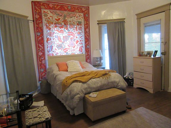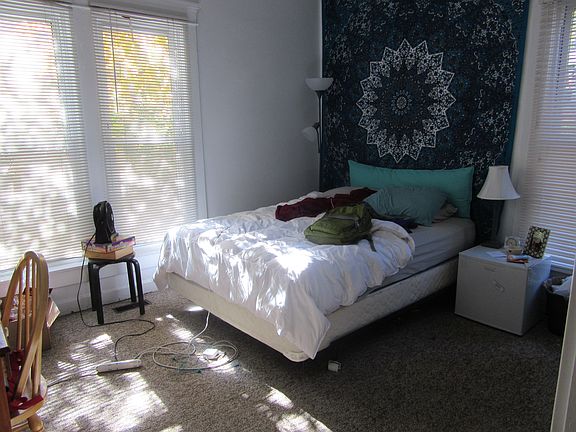 The house has 4 bedrooms, 2 full baths, as well as a fully equipped kitchen, a living room with large windows, a large front porch overlooking the street, a screened-in back porch, a backyard for grilling and unloading, and a walk-out basement for laundry and bike storage.