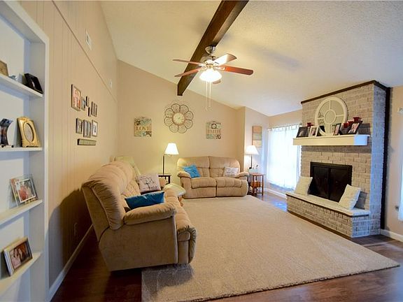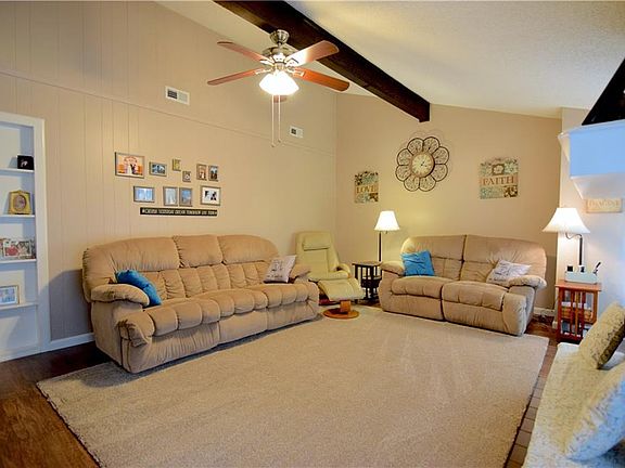 Completely remodeled in an established neighborhood. New wood look vinyl flooring, paint, counter tops, bathrooms, backsplash, appliances, windows, roof...everything! Vaulted ceiling in the spacious living room and lots of room in the eat in kitchen or entertain on the patio out back. New storage building, fenced yard, gutters, 2 car garage and great curb appeal. Whole house RainSoft water softener & Extra driveway on side of home for storing your camper, trailer or boat or simply for additional parking.