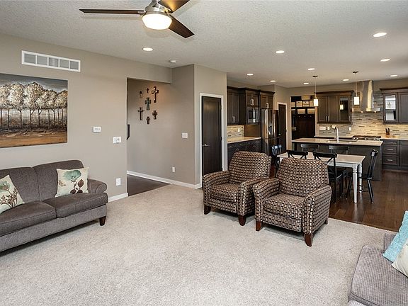 Welcome to this incredible, two-story walk-out home w/ over 3,000 sq ft of finish. Quietly nestled in a cul-de-sac on the NW side of Grimes, once you take a step inside, you will want to make it yours! Work from home? No problem–an office greets you right as you enter. The living room opens up into the dining + kitchen area. Upgraded SS appliances, gorgeous backsplash & pantry add to the warm feel of the kitchen. A mudroom w/lockers + ½ bath complete the main level. The 2nd level hosts the primary bdrm w/ trey ceiling, two walk-in closets, bath w/ dbl vanities & dbl headed shower. There are 3 add’l oversized bdrms, full bath & laundry room w/sink. The finished w/out LL boasts a spacious family room perfect for gatherings w/ a wet bar + full bath. Enjoy Iowa outdoors on the covered deck, or relax by the fire pit on the paver patio. Irrigation is included. Close to a walking trail, parks & also within North Ridge Elementary boundaries, don’t miss out on seeing this one for yourself! All information obtained from seller and public records.