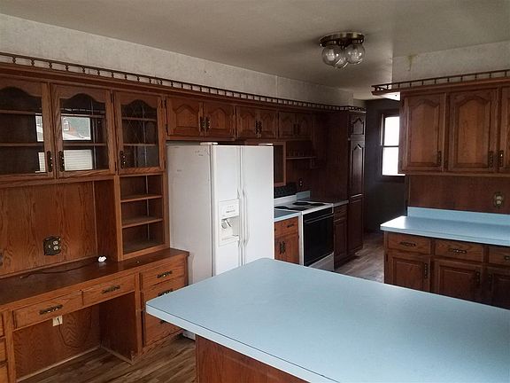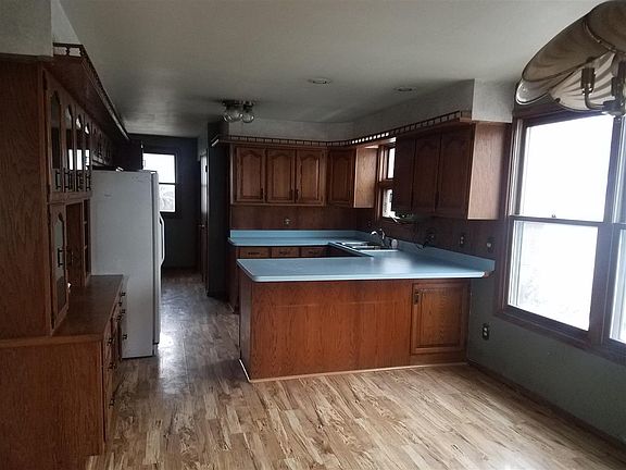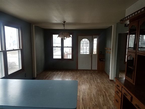 1.5 story vinyl sided home. Features 2 detached garages (2 stall and single stall), spacious living room and dining area on main floor. 2 upper bedrooms and full baths on both main and upper levels. Other room on upper/without closet. First floor laundry. Call for a showing today.