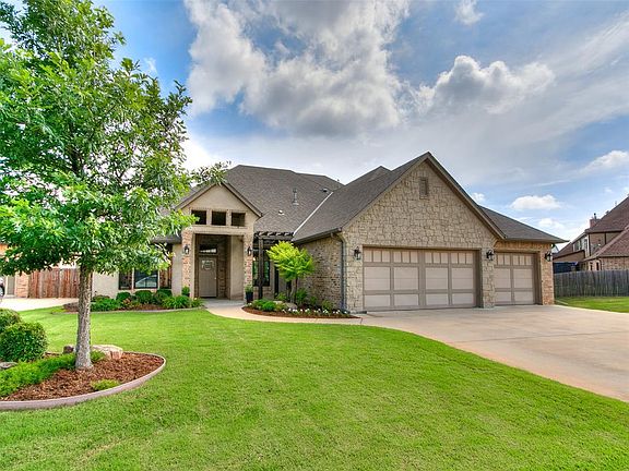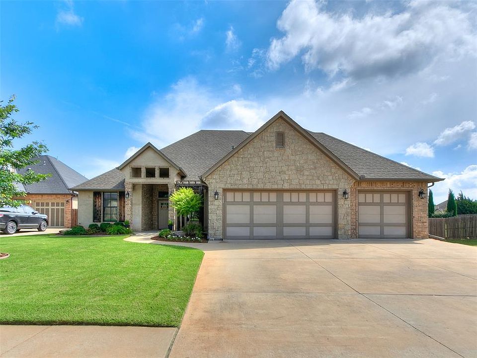 Located in the highly sought-after Twin Bridges community in Edmond, this spacious 5-bedroom, 4.5-bathroom home offers a blend of comfort, functionality, and convenience. The thoughtfully designed floor plan features an open-concept living area with a cozy fireplace, a large kitchen with granite countertops, a huge center island, and plenty of cabinet space, as well as a dining area perfect for gatherings. The main-level primary suite includes a spacious bathroom with dual vanities, a soaking tub, walk-in shower, and walk-in closet.