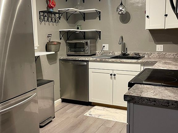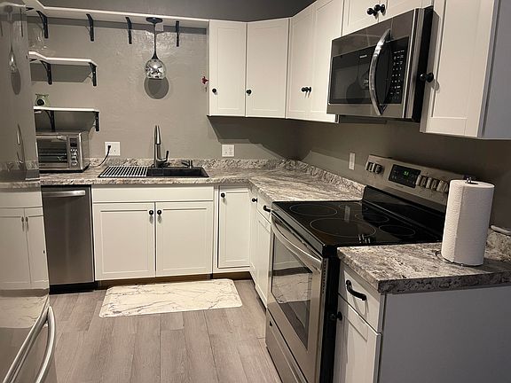 - Description: Stainless fridge, stove, dishwasher, microwave