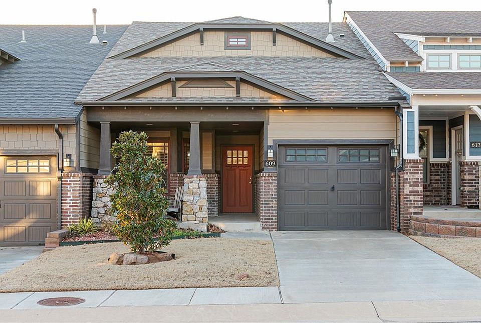 The Porches at Arbor Creek are a hidden treasure in east Edmond. Located right off of i35, yet tucked away from traffic and noise, this gated community is an oasis. The craftsman style community is beautiful and inviting. This 8-year-old home has been well maintained. It is light and bright with natural light coming into the living room through 3 large windows complete with plantation shutters. The home has beautiful wood floors throughout the main living areas. The kitchen is home to custom built cabinets, and stainless-steel appliances. The in-ground storm shelter in the garage will keep you ready for an unruly Oklahoma spring! This neighborhood has a clubhouse, fitness center, and an HOA that takes care of lawn maintenance (mowing & watering) as well as painting each home exterior every 10 years. Schedule your showing today!