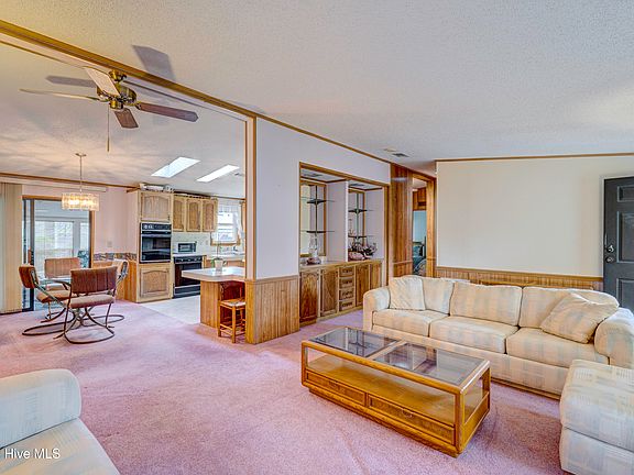 Set on a quiet cul-de-sac, this well-maintained 3-bedroom, 2-bath manufactured home offers comfort, style, and a welcoming community vibe. The home comes fully furnished, making it easy to move right in. Inside, enjoy a bright sunroom perfect for morning coffee or afternoon reading, and a spacious main living area. The kitchen and dining space are efficiently designed. Step outside to the inviting covered deck on the front porch, ideal for entertaining or relaxing in the breeze. Located in the desirable Topsail Greens neighborhood, you're minutes from the beaches, shopping, and dining, yet tucked away in a peaceful setting. With its excellent condition and ready-to-enjoy furnishings, this property is a true turn-key opportunity.