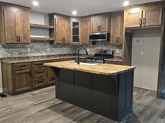 - Butcher Block Counters, Ceiling Fan(s), Ceramic Tile Shower, Eat-in Kitchen, Kitchen Island, Open Floorplan, Tray Ceiling(s), Tub Shower Combo, Walk-In Closet(s)