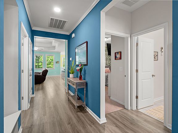 Welcome to this charming one-story home with 3 bedrooms and 2 full baths. As you enter, you'll find the secondary bedrooms located at the front of the home, offering privacy and separation from the main living areas. On the rear of the home, you'll discover the spacious owner's suite, featuring a tray ceiling, a huge walk-in closet, and a private en-suite bathroom with a double vanity, walk-in shower, and water closet.The foyer, kitchen, great room, and breakfast areas include luxurious vinyl plank flooring, creating a contemporary and low-maintenance living space. The great room is open to the kitchen and boasts a double tray ceiling, a cozy fireplace, and large windows overlooking the backyard, allowing natural light to fill the space.The kitchen is a chef's dream, completewith quartz countertops, a large island, designer cabinets and a breakfast bar for casual dining. It seamlessly flows into the great room and breakfast area, making entertaining a breeze. The breakfast area is bathed in light and features chic chair rail molding and a French door that leads to a covered porch. Adjacent to the porch is a spacious patio, perfect for hosting cookouts and enjoying outdoor living. The backyard is expansive and offers privacy with a fence, as well as a peaceful wooded area at the back. Residents of this home will also have access to the fantastic amenities of Foxbank, including pools, a play park, a lake, picnic shelter, dog park and gym. Additionally, the neighborhood is conveniently located near various restaurants, including a coffee shop, just a short golf cart ride away. Across the street from Foxbank you'll find a new Publix, as well as a nail salon and other dining options. If you appreciate nature and enjoy beautiful walks, be sure to visit Cypress Gardens, which is only minutes away. For those who love boating or fishing a public boat ramp to access the Cooper River is less than a 10-minute drive. This home offers the perfect combination of modern comfort, convenience, and access to outdoor activities.