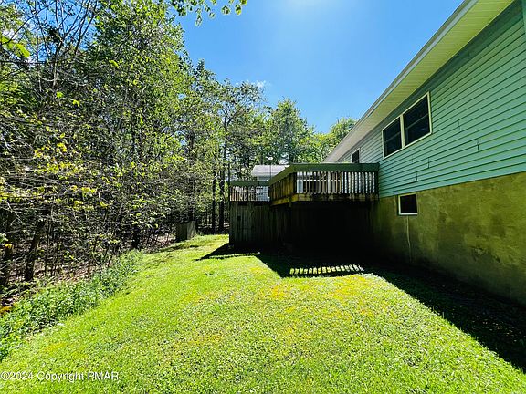 'Property is Under Contract and considering back-up offers only at this time.' Custom Designed and Built to Last, this Unique 2398 square foot Raised Ranch Home with Basement and Attached 1750 square foot, 4-5 Car Garage is located on over .52 acres in Pocono Farms Country Club & Golf Community. Step inside to discover a spacious living room where you can unwind, complete with High Ceilings, Propane Fireplace, Wet Bar, Anderson Windows & Velux Skylights. Spend peaceful mornings and serene evenings in the delightful 4 seasons room, offering the surrounding woods throughout the year. A Built in mechanic's work pit is located in the left rear garage, along with welder outlets, an air pipe and air compressor. Amenities Include: Restaurant & Bar Overlooking the Lake, Pool, Splash Pad, Pick