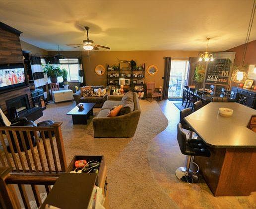 This place has it all! 4 bedrooms, 3 bathrooms (master suite), open floor plan, large kitchen, fireplace, finished garage, deck, fenced in yard. It also has a hot tub (not sure if its working). Comes with a flat screen tv, dishes, pots/pans, and furniture set! One year