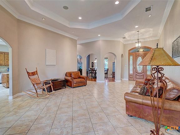 Stunning custom-built home on almost 1 ½ acre lot! Discover luxury living with so many unique and wonderful features, from the six tray ceilings (including one with modern uplighting), recessed lighting in almost every room, installed speakers everywhere but secondary bedrooms, Texas limestone fireplace and breakfast bar kickplate that match the exterior, a chef’s kitchen with double oven and second prep sink, ultra energy-efficient dual fuel heat pumps, and an amazing primary bedroom suite with private access to the back patio. The perfect floorplan offers everything on the main level except a spacious upstairs flex room with a wet bar, the ideal game/media room or private guest bedroom. Just as impressive as the interior is the incredible, approximately 600 square foot covered patio. This resort-style outdoor living area is accessible from both living areas and the primary bedroom. Private and elevated, it overlooks the huge, treed lot and features outdoor speakers, recessed lighting, ceiling fans, stone arches, and a beautiful wood-plank ceiling! Excellent location in a small neighborhood of executive style homes on large lots set on the banks of the San Gabriel River. While it feels like you’re many miles from anywhere in the scenic Hill Country, you’re just minutes away from everything! Within 3 miles of Hwy183 and 29, restaurants, retail, HEB grocery, Austin Community College campus and even an Austin MetroRail park-and-ride station for stress free travel to the Domain and downtown Austin.
