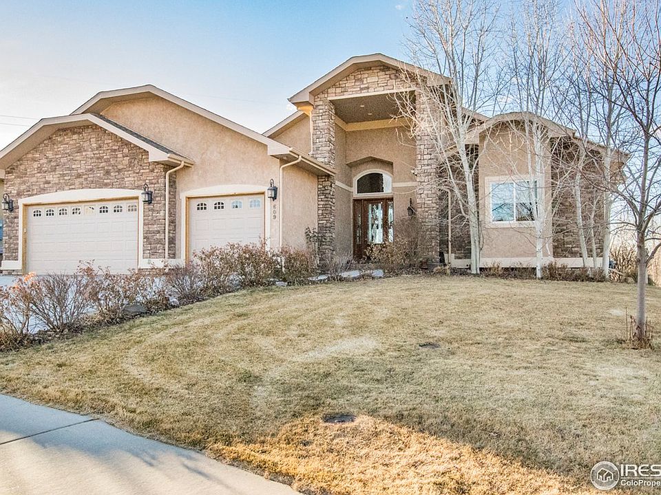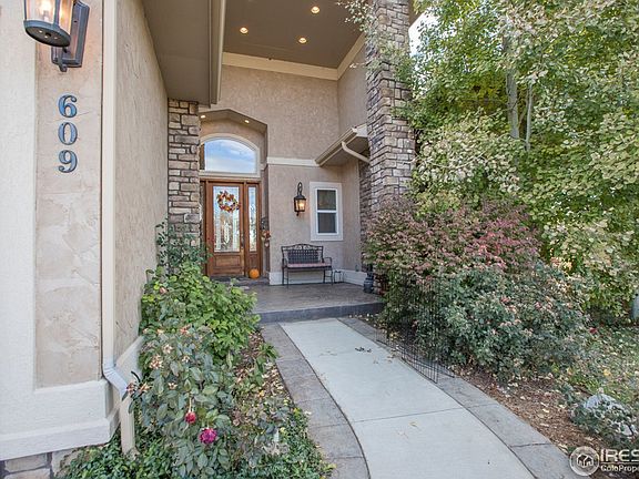 Masterfully built, open plan, opens to views of the front range, open space & Poudre Trail. Vaulted ceilings throughout the home, custom finishes are sure to please. Gourmet kitchen w/ walnut cabinetry, granite, walk-in pantry & incredible acacia wood floors. This home is 4 bedrooms, 4 baths, with a double sided fireplace, finished walk-out basement that includes a media room, wet bar & wine cellar, 2 laundry rooms and a 4 car garage...plus a fantastic deck & yard w/ hot tub & oversized patio.