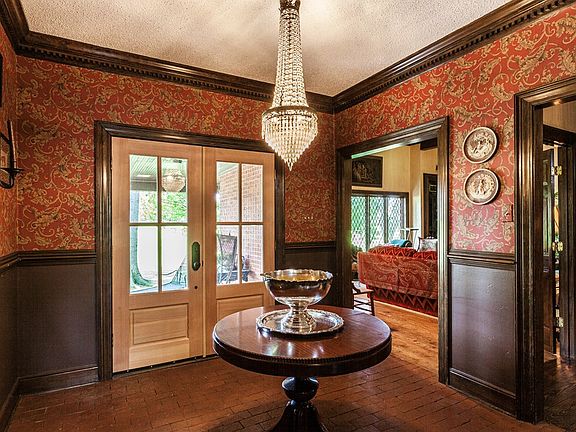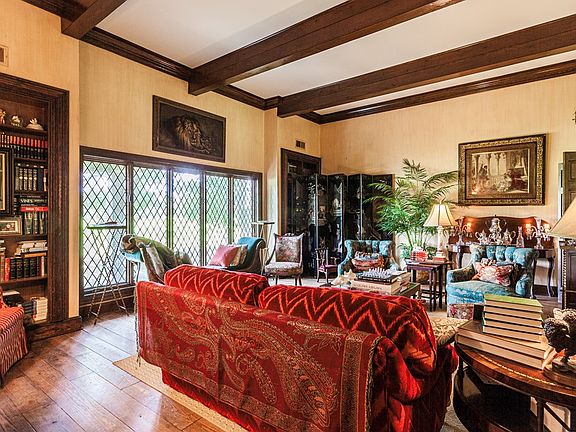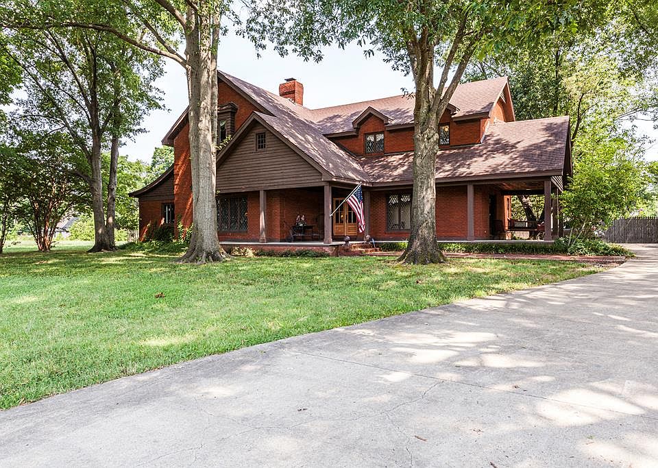 Located at the end of Roosevelt this custom built home offers a semi- secluded feeling with the benefits of being in town. Enjoy the breeze from the side porch overlooking the field. Formal living room with 13' beamed ceilings, massive wood-burning fireplace with marble surround, built in bookcases and a wonderful window with diamond shaped leaded glass over looking the field. The informal living space is the place to be. Combination living, with wet bar, dining and kitchen is warm and cozy. Kitchen is more than charming with a Dutch door leading outside. Marble countertops, custom cabinetry, and a large pantry complete the open space. Master bedroom suite has his/ her bathrooms and a sunken sitting room with gas or wood-burning fireplace for the cool evenings. On the first floor there is another bedroom and bath with leaded glass windows and French Doors leading to the side porch. Laundry room is large enough to accommodate 2 dryers, washer, and freezer or refrigerator. Upstairs 2 huge bedrooms, 1 shower bath, 1 bathroom suite with clawfoot soaking tub, library / study, office or sewing room, and a extra large sunporch overlooking back of property. Just off the courtyard area is a detached 2 car garage with additional storage. English countryside feeling within the city limits.