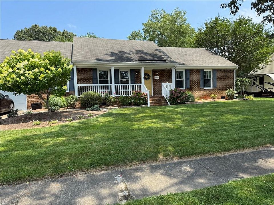 Beautiful four bedroom brick ranch with an in ground pool is so inviting- Upon entering, you will be impressed by the open and bright space -custom painted brick fireplace with doors, a custom mantle, built in bookshelves and wood laminate flooring - eat in kitchen has granite counter tops, painted cabinets, new hardware, subway tile back splash, stainless steel appliances, wood laminate flooring and a bay window overlooking the pool. The master suite boasts wood laminate flooring, a private bath that has been updated including a sliding barn door, vanity cabinet with quartz counter top, new vinyl flooring, light fixtures and tile surround above the shower-not a typical ranch - move in ready to enjoy indoor and outdoors - NO HOA or DUES