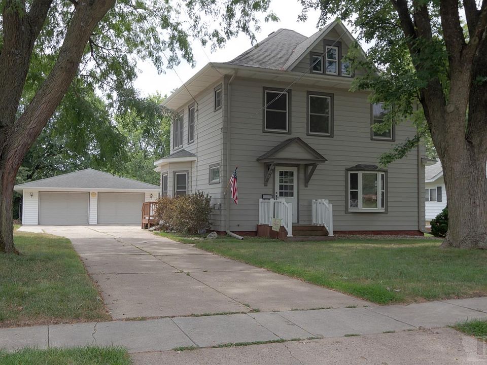 Stately home with major item updates; roof 2013, furnace & programmable thermostat 2014, siding 2013, windows (tilt 2015, patio door 2014, seamless gutters & downspouts 2013. Open beam ceilings and beautiful woodwork offer additional charm. Large back yard with extra-large double garage, complete with electric, drain & heat. Third level could be converted to bedroom, toy area or additional storage.