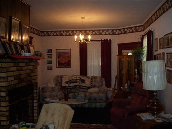Nice 2 Bedroom, 1 Bath Home with Covered Front Wrap around Porch located on a extra large double corner lot, metal roof, nice fireplace in large living room and a 1 car detached garage! Come Take a Look!