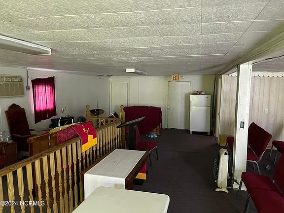 This building was last used as a church and according to tax records was built in 1910.  Inside consists of one large room, two half bathrooms and one office space.  Both bathrooms appear large enough to add a tub or at least a stand up shower.