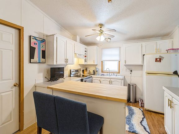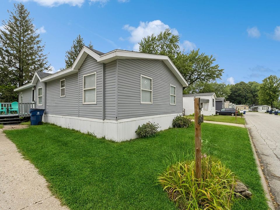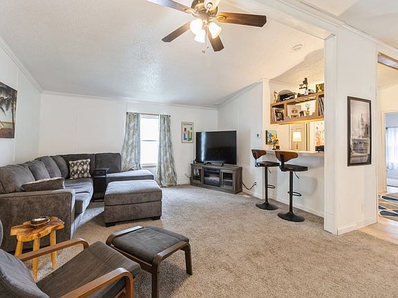 1991 3 bedroom, 2 bath, 1501 sqft, entry porch, has large shed, plank flooring throughout except living and primary rooms. Large BR with 2 vanities, shower and tub combo, and skylight. Wet bar with sink, kitchen has coffee bar area, including appliances, new furnace and AC 2024. Selling AS IS. Furniture can stay with full offer. Lot rent 629 monthly. 2024-09-17