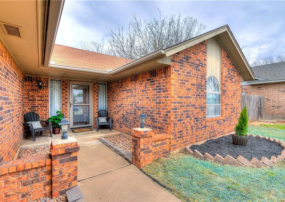 Charming home in Moore schools! The high ceilings and the cozy fireplace in the living room really welcome you home. Master bedroom with an updated walk in shower. Private access from one guest bedroom to the the guest bath feels as though there are two master bedrooms.The converted garage gives you an amazing bonus room for just about anything! The backyard is ready for relaxation or summer fun and entertaining, complete with a patio, fire pit and cooking/prep space.Conveniently located with easy access to just about everything!