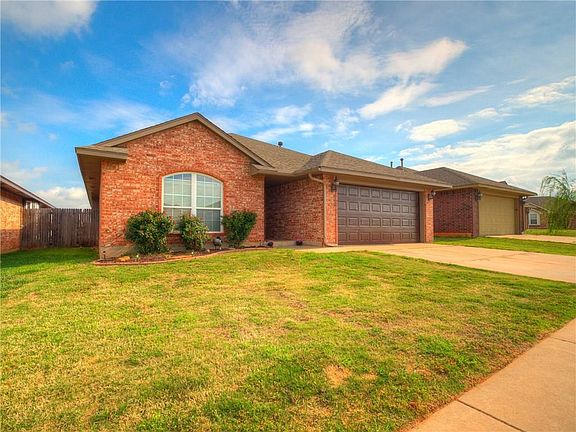 Wonderful home in the lovely addition of Apple Valley. This home sits on a quiet cul-de-sac and has a lot to offer. Spacious living room with fireplace, breakfast nook with window seat, kitchen with spacious bar - perfect for entertaining. Storm Shelter in garage. Bedrooms have all new carpeting. Fresh paint throughout most of the home. The neighborhood features walking trails, ponds, a splash pad, and a park. Tour this home today - it won't last long!