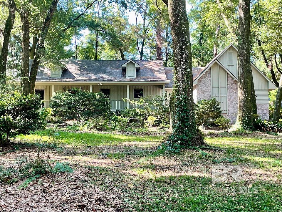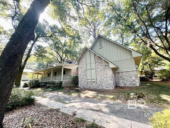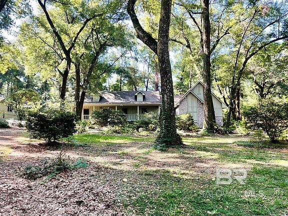 Sitting on the front steps on this large covered southern style porch (8x42) you see and feel the by gone era of a true neighborhood. Majestic sweeping oak trees with draping moss waiting for you to hang that hammock or swing. Bike riders and runners wave as they go by. CIRCULAR drive to this custom brick & stone home. Over a half acre lot. Located in Sleepy Hollow, a quaint one street cul de sac enclave of custom homes on the Bay side of Olde Daphne. This is the street all the neighborhood littles flock to at Halloween; decorated to the hilt homes with the dewy fog from nearby Mobile Bay make it a haunting good time. This home has a 16' foot tall stone fireplace. Split plan. Formal Dining room. Solid wood doors. Oversize 2 car garage. Bay access from Belrose Avenue & May Day Park to parks, kayak and fish. Nearby Bayside, Christ The King & Daphne elementary schools to bike and walk to. Lots of potential. Home needs updating. INVESTORS & BUILDERS this is the location. BRING YOUR VISION AND OFFER. LOW PRICE FOR HIGH VALUE HOMES in this sought after area. Furniture will be removed, home to be professionally cleaned and yard to be maintained. ESTATE. Buyer to verify all information during due diligence.