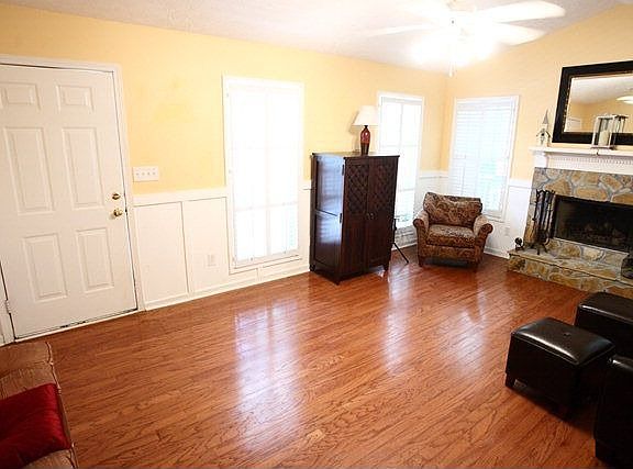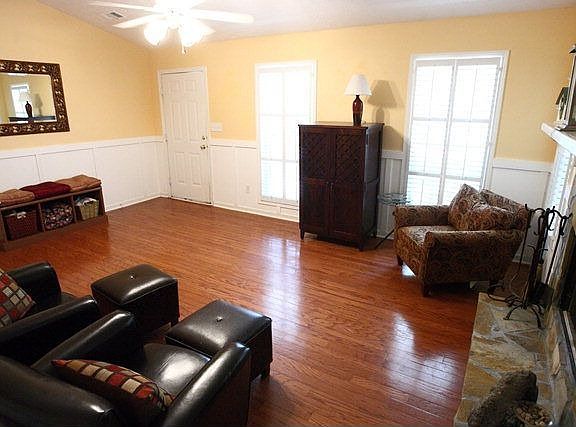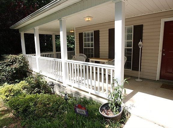 Precious! 3 bedroom, 2 bath home with fabulous landscaping and private rear yard! Kitchen boasts solid surface counter tops, beautiful wood cabinetry & breakfast nook. Exterior features a wonderful wrap around porch which can be accessed from dining room. Great bonus room addition over garage. Kitchen has exterior door which leads to back patio and beautifully landscaped yard.