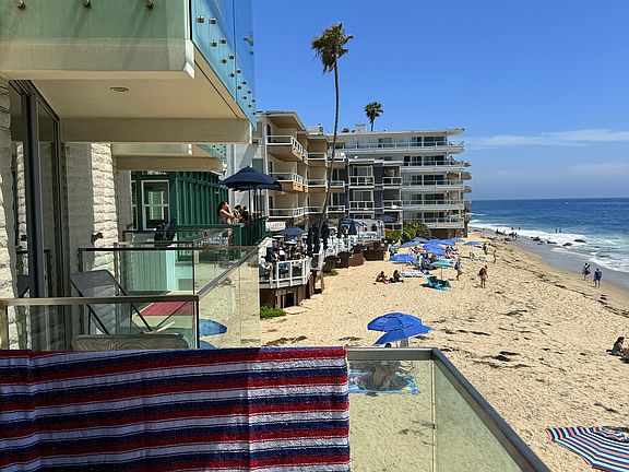 UNFURNISHED ~Incredible Oceanfront downtown location. Resort-style living in the heart of Laguna Village. . Gorgeous balcony directly over the water with panoramic ocean, coastline and Catalina Island views. Granite kitchen with stone floors throughout. Walk in closet and plenty of storage inside. Built in Murphy bed. Walk to restaurants, shops and downtown. Hear the waves and watch them crash! Covered parking and laundry, and beach storage .. glass panel deck feels like you are floating over the water. Tenant to verify sq ft if a factor of renting. Unfurnished for a 12 month lease. Landlord pays gas and water. Tenant pays Electric, cable and wifi NO PETS OR SMOKING Great oceanfront unit available long-term unfurnished. Comes with a parking spot, full kitchen, laundry and walk-in closet.