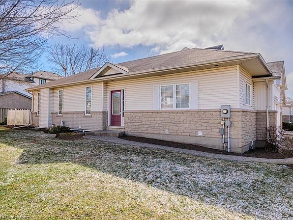 Set on a low traffic crescent in the sought after Eastbridge neighbourhood. Close to the trails and amenities of Rim Park, Conestoga Mall and the LRT and more. This rarely found bungalow end unit freehold (no condo fees!) is attached above ground only at the garage and sits on a lovely landscaped bend lot. Perfect for downsizers or those just starting out this bright and airy home has been freshly painted, has all new carpet and gorgeous wood floors. The spacious kitchen features 3 stainless appliances, crown moulding and under cabinet lighting. The primary bedroom is a great size and would fit a king size bed, has double closets and a 4 piece ensuite privilege. The large living room has tall windows and a double French door walkout allowing the sun to shine in! The huge basement provides plenty of options with a great recroom with corner gas fireplace, another 4 piece bathroom and a den/bedroom. There’s also utility, laundry and storage rooms down. Mechanicals include, forced air gas heating, water softener, heater and filtration system as well as sump pump with battery back up. Other features include stamped walkways and patio, soffit lighting, upper level laundry roughed in and all window coverings. Book your viewing today!