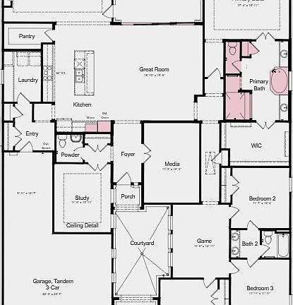 What's Special: Corner Lot - Media Room - 3 Car Tandem Garage.