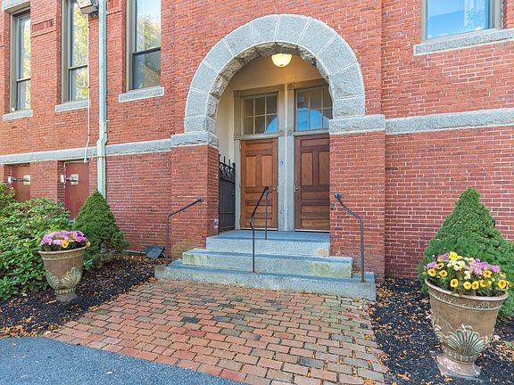 Spectacular, newly updated condo situated only 1 block from downtown Portsmouth where you’ll enjoy easy access to restaurants, shopping, entertainment, the waterfront, dog park, pickleball & basketball courts & more! The historic Whipple School building was built in 1890 & has been transformed & modernized into an 11-unit condo association. The main living space in this 1st floor corner unit features stunning 8’ tall windows letting in tons of natural light & 13’ high ceilings that make a dramatic statement to impress your guests upon entering. The original hardwood floor & custom built-ins allow the space to feel warm & inviting while being open & airy w/ beautiful views of the outdoors. The recently renovated kitchen includes a large island with seating for 4, an abundance of painted maple cabinets for excellent storage, beautiful ceramic tile floor, & new appliances including gas stove. Enjoy the open-concept layout for dining, entertaining & relaxing in the spacious main living area. The primary bedroom includes wonderful closet space & private bathroom w/ gorgeous custom tile & glass shower, new vanity, linen closet, heated floor & towel bar! The nicely sized 2nd bedroom has access to a separate ¾ guest bath w/ shower & laundry. Unit comes with 2 parking spaces, a 20’ x 15’ private locked storage space in the basement, & additional common area storage for bikes, kayaks, & more. Delayed showings start Thursday 7/18.