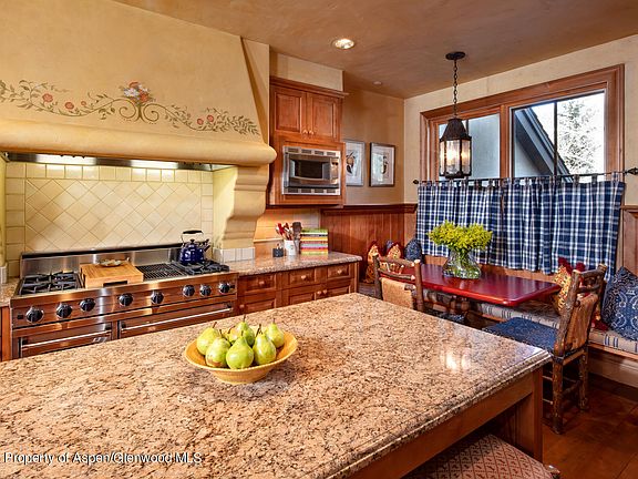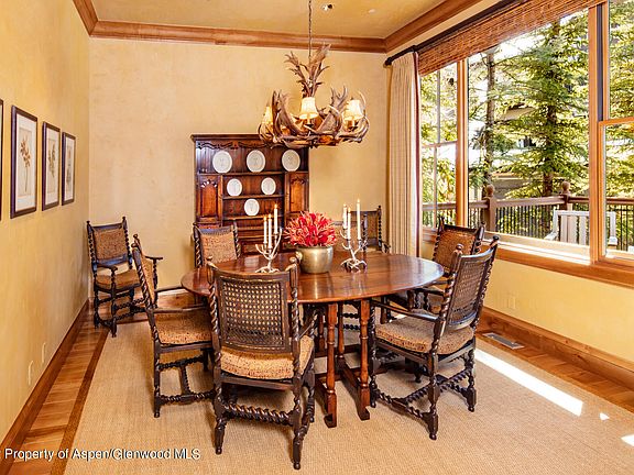 Step into European chalet luxury at this stunning Owl Creek Townhome, located within The Pines. Beautifully maintained, the house features 4 en-suite bedrooms, multiple terraces and space to enjoy the outdoors, views of the Two Creeks lift and the Hanging Valley on Snowmass. Built with the finest materials and quality finishes, the house is open and bright, with large volumes and vaulted ceilings on the upper level. The stately residence features ski-in ski-out convenience with the private ski lift to Two Creeks. Ideally located on Owl Creek for a short commute into Aspen or all the recreation Snowmass Village has to offer: cross-country skiing, mountain biking, hiking trails and family activities at the surrounding resort.A beautiful Master Suite, with fireplace and balcony, provides a sumptuous retreat, and a luxurious bath with oversized steam shower, jacuzzi tub, and large, walk-in closet. A private second Master also features a steam shower and jacuzzi tub. Two additional bedrooms on the lower level have walk-out access to a terrace and oversized hot tub, offering stunning views. A heated two car garage, boot room, and laundry room complete the lower level. On the main floor, an open flow living room, dining room, and kitchen, along with two decks overlooking the surrounding mountain vistas, are joined by a flex room that may serve as a media room, office, or library. The gourmet kitchen features top-of-the-line fittings, two seating areas as well as a charming Alpine banquette for six. A beautiful Master Suite, with fireplace and balcony, provides a sumptuous retreat, and a luxurious bath with oversized steam shower, jacuzzi tub, and large, walk-in closet. A private second Master also features a steam shower and jacuzzi tub. Two additional bedrooms on the lower level have walk-out access to a terrace and oversized hot tub, offering stunning views. A heated two car garage, boot room, and laundry room complete the lower level. On the main floor, an open flow living room, dining room, and kitchen, along with two decks overlooking the surrounding mountain vistas, are joined by a flex room that may serve as a media room, office, or library. The gourmet kitchen features top-of-the-line fittings, two seating areas as well as a charming Alpine banquette for six.