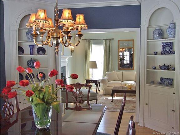 Stunning 3300sq ft Contemporary Colonial with all the upgrades of a new home! Two story marble foyer with 9ft ceilings; living room and dining room open to each other. Living room with hardwood floors, sconces, fireplace and French doors. Dining room with built-ins, bow window and hardwood floors. Fabulous white kitchen with granite counters, limestone backsplash, stainless steel appliances and gas cooktop. Luxurious master with full bath with granite, two separate sink areas, large walk-in closet, whirlpool tub and private office. Elaborate moldings and detail throughout! The covered porch overlooks the expansive, level back yard offers room for a pool. This Central Cheshire location is a wonderful place to call home!