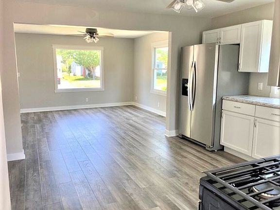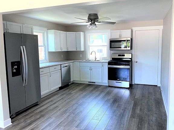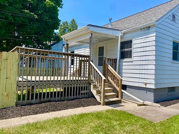 Updated 4 bedroom Cape Cod offers all new flooring, drywall (on the main floor), bath, kitchen, plumbing, electrical, light fixtures, fans, appliances and new central air. Furnace (3 years old), new privacy wood fence. New front porch. Roof (2014). 2 car detached garage with alley access. Broker owned.