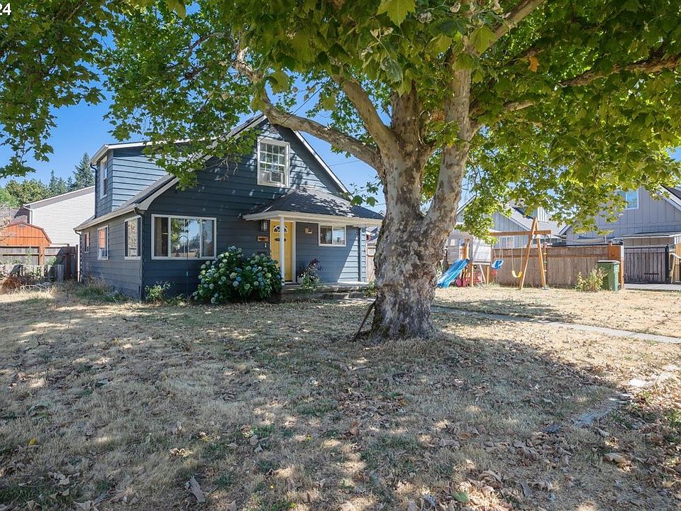 Fall in love with vintage period detail with this charming 1930's cottage! Retro finishes and layout offer the convenience of recessed storage and pantry space for a modern, uncluttered aesthetic. Practical formal living, dining, updated kitchen and a main level bedroom and bath. Auxiliary bedrooms in loft, graced with beautiful original hardwood floors, offer versatility for private home office or hobby space. Summer and fall gameday barbeques await in the privacy fenced backyard with raised garden beds. The covered front porch also adjoins the front and side yards where room for backyard flock addition beneath the shade of a sprawling mature maple tree could offer adaptability for the ultimate urban homesteading experience. Enjoy the convenient access to downtown Newberg's live music, seasonal farmers' markets and art walks!