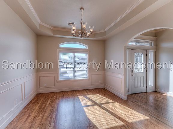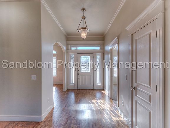 Rare find in beautiful Sand Springs neighborhood in Pratt Elementary district. Spacious 4 bed, 2 1/2 bath home with 3 car garage. Real hardwood floors throughout common spaces. Large living room with fireplace opens to kitchen and formal dining. Kitchen features 5 burner gas stove, granite countertops, and stainless appliances. You'll also love the walk-in pantry and spacious laundry room. Primary bedroom features corner fireplace and walk-in closet. Primary bath includes dual vanities and separate tub and shower. Two guest bedrooms are connected by a Jack and Jill bath. 4th bedroom would make a great office. In the back yard you can relax on the covered patio and enjoy the large yard. $2200/mo Rent + $2200 security deposit. One small dog under 40lbs may be considered with a non-refundable fee. Applications will NOT be considered prior to an in-person tour with a Leasing Agent.