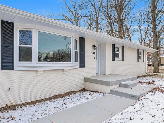 Your new Instagram-worthy home awaits! This white brick ranch features all the items you will need and want - including an acre of land right in the middle of town and over 2100 Square feet of living space! Enter the front door into a nicely decorated entryway and a built-in coat rack. The living room features loads of natural light making your living space light and bright! Don't miss the fireplace making the space warm and cozy. Enter your large galley-style kitchen that has been updated with quartz countertops and features plenty of storage. The kitchen sink features an Ecowater reverse osmosis system as well! Don't miss the large space for your dining area! The main level also features a large updated hall bathroom with modern features, a primary bedroom with an en suite bathroom and two other bedrooms. All bedrooms feature loads of natural light and all updated doors! In the basement, you will find loads of space with an extra bedroom, family room, office/storage, and a large laundry room for exercise area, storage, and more. Plus you will find access to the garage from the basement as well! Outside living space abounds at this property with a large deck, updated railing, and some boards. This leads to your new hot tub which was purchased 3 years ago from the local Mahomet company Healthy Living Spas. This property also features a nice play area and a 16 x 20 outbuilding that is finished and features a mini-split for temperature control - this area has endless possibilities! This property also features multiple updates - driveway (added new rock too), front sidewalk, front porch, and back sidewalk concrete was all completed within the last 2 years, high efficiency wall units in basement, shed finished with mini split, outside brick painted, some interior paint updated as well, wood burning fireplace 2 years old and regularly serviced, dishwasher in 2023, new roof 2023, reverse osmosis and softener 2023, hot tub added, updated light fixtures, updated doors, updated tile in hall bath and much more! Do not sleep on this new listing in the Mahomet-Seymour School District. It is your chance to own a little piece of paradise right in town!