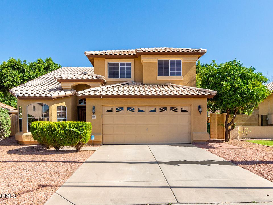 You'll definitely fall in love with this one-of-a-kind gem in a beautiful neighborhood with no HOA. The home features unique, European-style architecture with grand stone columns, travertine flooring, and a lion-head sink. Modern family room enjoys pre-wired surround sound. The kitchen is a chef's delight, complete with stainless steel appliances, granite countertops, cabinets with crown molding, and a built-in wine cooler. All bedrooms are upstairs and include custom built-in shelving in all closets. The main retreat on the second floor showcases wood-look floors, vaulted ceilings that add to the spacious feel, and an ensuite with a jetted tub. Generous-sized backyard, with its covered patio and relaxing fountain, is the right spot for hosting barbecues. Come see it in person to appreciate its true beauty!