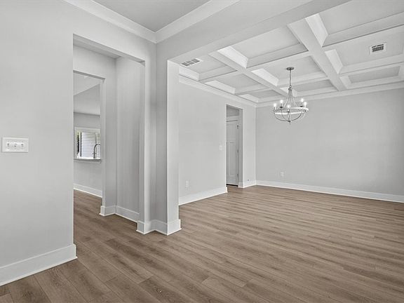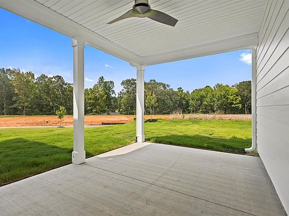 The Sutherland home offers over 2600 square feet of luxurious living space, crafted for those who desire both comfort and sophistication. The expansive front porch leads to a welcoming foyer and an adjacent dining room with coffered ceilings. The seamless flow between the spacious family room and the well-appointed kitchen is perfect for entertaining. The large windows in the family room give wonderful natural light and the gas fireplace with two story stone surround gives the room a cozy feel. The gourmet kitchen has a peninsula with farmhouse sink for additional seating, large island for extra prep space, beautiful white cabinetry, light Quartz countertops, tiled backsplash, under cabinet lighting, and stainless-steel appliances including a gas range/oven and refrigerator. The adjoining breakfast area leads out to the covered back porch which overlooks your large backyard. The Primary Suite is also on the main level for added privacy. Enjoy a generous walk-in closet and spa like bathroom with double vanities and a beautiful tiled shower with built in seat. Your laundry room with washer/dryer included completes the main level. Once you go up the grand Oak staircase with open rail that overlooks the living room, you will find three more bedrooms, all with walk in closets and two full baths. Blinds are also included throughout the home. All our homes feature our Smart Home Technology Package including a video doorbell, keyless entry and touch screen hub. Additionally, our homes are built for efficiency and comfort helping to reduce your energy costs. Our dedicated local warranty team is here for your needs after closing as well.