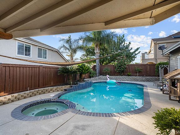 Stunning 5 bed, 3 bath corner home with pool and spa in Shadow Lakes with about 3,700 sqft! An abundance of upgrades including new solar system, large front porch with room for seating, upgraded front door, wood floors, custom crown moldings, chef's inspired kitchen with granite counters and stainless appliances, beautifully appointed bathrooms with designer touches, abundance of living areas including a large private office at entry, expansive bonus room on second floor, wide hallways with built in cabinet and desk areas, and a multitude of closets with large storage capacity. Rear yard includes an in-ground swimming pool and spa, covered attached seating area with built in fans, and a large patio area. Four car garage, private court location, and close to schools and golf course.