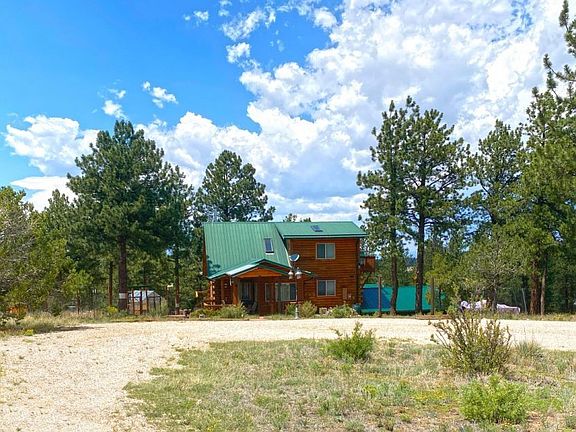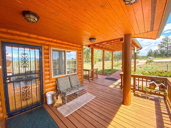 Built as a full time residence, Pine Forest Cabin is a charming Lincoln Log home sited amongst towering ponderosas and is being SOLD AS IS. Circular driveway leads you to the welcoming front porch and wrap around patio. Enter into the foyer/mudroom with ample storage and on into the inviting living room warmed with soapstone woodstove and picture windows. Dining room, bedroom with 3/4 bath and kitchen with updated appliances are also on the main level. Upstairs is dedicated to master suite with deck and master bath including a jetted soaking tub and European style shower. Lower level offers bonus space for crafts or storage, mechanical room, laundry and attached 3 car garage. Dream property for the gardener with fenced garden area and hardy fruit trees as well as your own established greenhouse! Tuff shed on the property is ideal for storage.