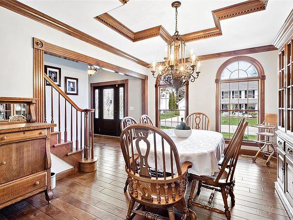 From the moment you arrive to this stately 2 story with brick elevation & a side entry garage, you are sure to be impressed! Stepping inside, you will immediately notice the gleaming hardwood floors & extensive millwork including coffered ceilings, custom built-ins and fluted casements! The foyer is flanked by formal living & dining rooms, and leads to the family room, centered around a floor to ceiling brick fireplace. The open floor plan is perfect for hosting with an stunning kitchen featuring granite counters, updated cabinetry, tile backsplash & stainless steel appliances. Sliding glass doors lead into the lush backyard with a large paver patio. Upstairs hosts a spacious loft & the home's 4 bedrooms, including the private owner's suite w/clawfoot tub, separate shower, double sinks & walk-in closet. An entertainer's delight, the lower level hosts an expansive wet bar, large rec rooms, private office & convenient bathroom! Fantastic location with easy access to parks, hwys & more!