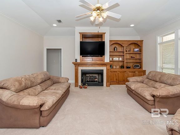 Move-in ready 4 bedroom, 2.5 bath home with over 2500sf in Saraland that has been meticulously maintained. Features include the following: .9 acre lot, double garage, brick exterior, formal dining room, spacious kitchen with eat-in breakfast area, crown molding, split floor plan, large primary suite with dual walk-in closets, dual vanities, soaking tub and walk-in shower, living room with fireplace and built-in bookcase, additional space upstairs for a potential bonus room, covered rear porch with a large patio overlooking the back yard. Make an appointment before it's too late! Buyer to verify all information during due diligence.