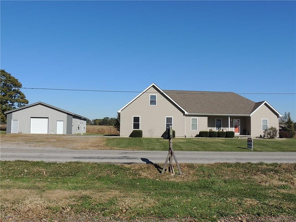 Very nice one owner home close to town on one acre. 32 x 60 pole barn with ?? bath and utilities, ideal for home business or hobbies. Kitchen and Baths boast custom built maple cabinets w/ solid surface counter tops. Cherry hardwood floors. Split floor plan with 3 bedrooms and office on main floor. Large attached garage. Need more space? Partial unfinished basement with rough in for additional bath. Still need more? Stairway to 300 sq. ft. of unfinished attic space. This is a ???must see property???!
