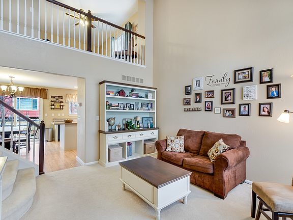 Beautiful two story home in the coveted Cherry Creek School District. Located directly across the street from a large park and playground with access to miles of walking/biking trails. This home has a welcoming formal living room with vaulted ceilings and brilliant natural light. The updated kitchen has an island with breakfast bar, updated cabinets & hardware and a new dishwasher & microwave. Fresh interior and exterior paint. Plantation blinds. Spacious family room with a gas fireplace and a custom pallet wall. The second level boasts a bright open loft that could easily be converted into a 4th bedroom, 2 secondary bedrooms and the master suite. The master has a 5 piece en suite bathroom and walk-in closet with built-in shelving. The basement has been partially finished and offers great additional space. Nicely landscaped backyard with a patio, perfect for outdoor entertaining. Conveniently located to shopping, restaurants and entertainment. Near Trails Recenter.