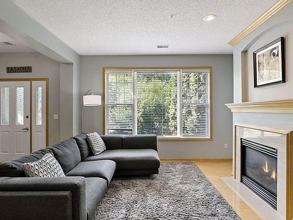 Terrific south facing unit in demand Pointe West Commons. Wonderful open style w/ 9 ft ceilings, hardwood floors, gas fireplace, large kitchen includes maple cabinetry + stainless steel appliances. The upper level features spacious master bedroom w/ cozy bay window and walk-in closet, roomy full bath with separate tub & shower, good sized 2nd bedroom, plus loft area~ perfect for home office and convenient upper level laundry. Don't miss the 2 car garage with its own garage door. Just blocks to West End shops & dining, next to Blackstone Park, close to Lifetime, easy access to trails and downtown. Just move right in and enjoy your beautiful new surroundings!