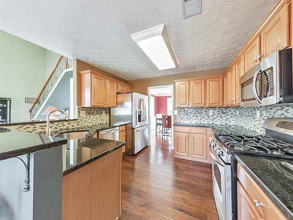 - Kitchen Features: Breakfast Bar, Cabinets Stain, Eat-in Kitchen, View to Family Room, Stone Counters, Other