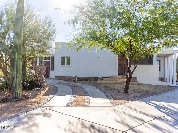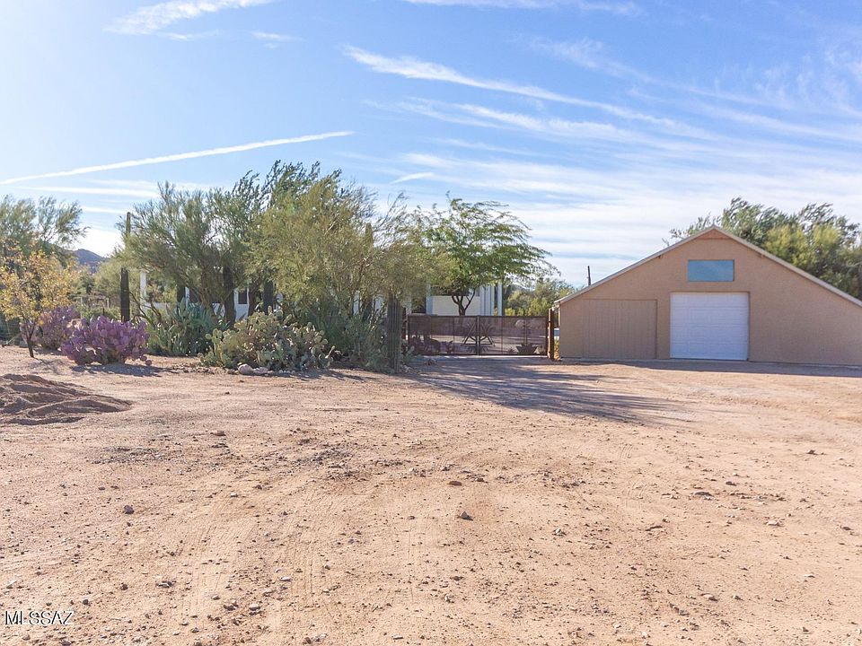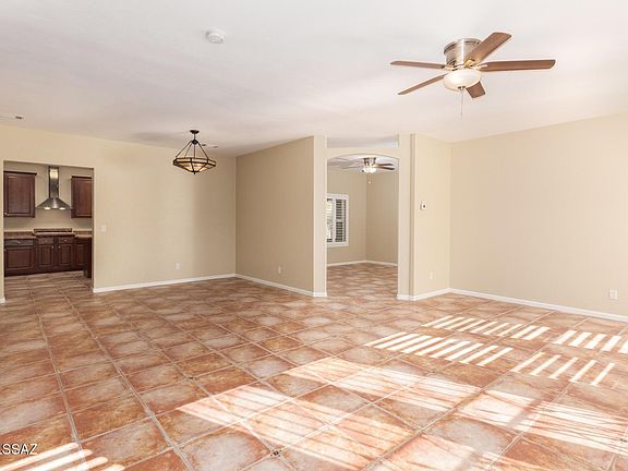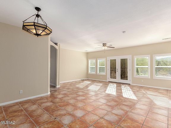 Fall in love with this beautifully Updated Home w/a enclosed porch entry, upgraded lighting, new ceiling fans, plantation shutters, welcoming new palette, & French doors to patio. SS appliances includes LP gas range, cabinet oven, Refrigerator, hood over range, & a new microwave. Spacious great room floor plan features a kitchen center island, new large sink, pantry, & plethora of handsome wood cabinets w/hardware. Formal dining area & interior laundry room w/storage cabinets. Beautiful engineered wood floors in all bedrooms, ample closets, & 2 pristine baths. Fantastic Arizona room with breathtaking Mountain views & yard access. Surrounded by natural desert, patio, & detached garage w/vaulted ceilings. Close to Saguaro National Park West. Agent/Owner