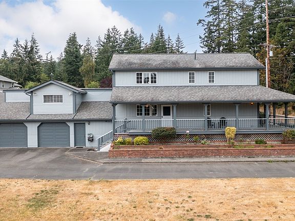 This is it! Spacious well built home on shy 1 acre has 3 bds, 2.25 baths, large living areas, and plenty of room for your hobbies/crafts and or home business. The wrap around covered porch welcomes you upon approach and invites you to enjoy your favorite beverage as you take in the surrounding acreage and distant peak-a-boo views. Main floor includes large kitchen (w/pantry), living, dining, and spacious bonus room. Primary bdrm has full bath and walk in closet. Attached 2 car garage and detached shop/garage are only part of the bonus features. Home includes studio and craft space above the garage and large partially finished basement with plenty of room for projects, hobbies or whatever you can dream up. Additional storage inside and out.