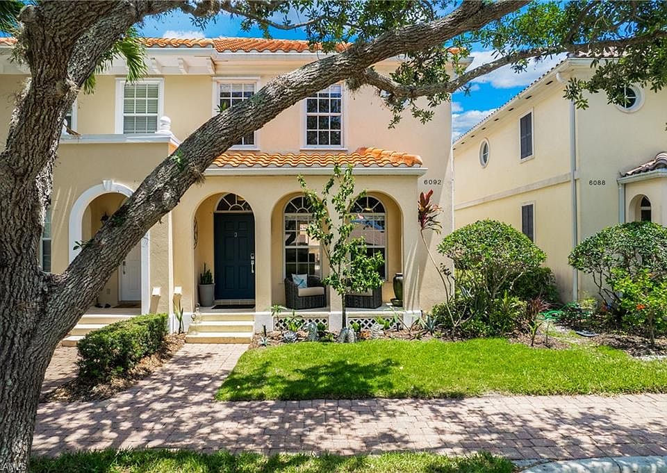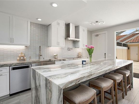 Experience modern elegance with this 2-story townhome facing the lake in highly sought after Island Walk! Featuring 3 bedrooms and 2.5 baths with a detached 2 car garage, this home has been fully renovated and upgraded. You’ll be immediately wowed by the remodeled kitchen, complete with all new soft close cabinets, an extra-large island (10 1/2' long), extra thick (2 3/4") double waterfall marble countertops, new stainless appliances, newer top of the line glass stove top, built-in ice maker, new smart refrigerator, and an extra-large stainless sink with cutting board accessories. The list of upgrades goes on with new tile flooring throughout, new interior and exterior paint, including garage and lanai (2023), newer stainless fixtures and fans, and smart home features all operated by Alexa. A newer roof and central vacuum are added bonuses. Enjoy the open floorplan and the best of indoor-outdoor living on the expansive and private screened lanai. A pasta and wine bar are located steps from the unit! Island Walk is a gated “blue zone” community, offering a clubhouse, resort-style pool, fitness center, tennis, pickleball, exercise classes, putting green, beauty salon, gas station, car wash, post office, biking and jogging paths and much more. Conveniently located off of Vanderbilt Beach Rd, with easy access to I-75, world class dining, shopping, entertainment, and beautiful white-sand Naples beaches.