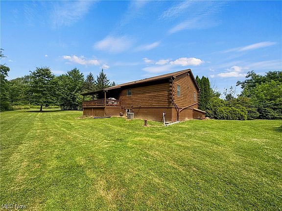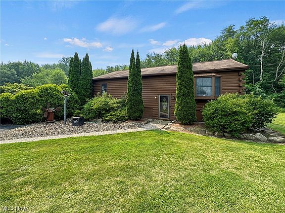 Log home nestled on 5.33 acres surrounded by trees. On the upper floor -living room that features a vaulted ceiling; the master bedroom has an attached bathroom, a main bath and two more bedrooms, kitchen with dinette and pantry, and a laundry room. On the lower level is a great room with a gas Franklin fireplace. 2-car detached garage and a dog kennel building capable of housing 8 dogs. Appliances stay. Beautiful piece of property!
